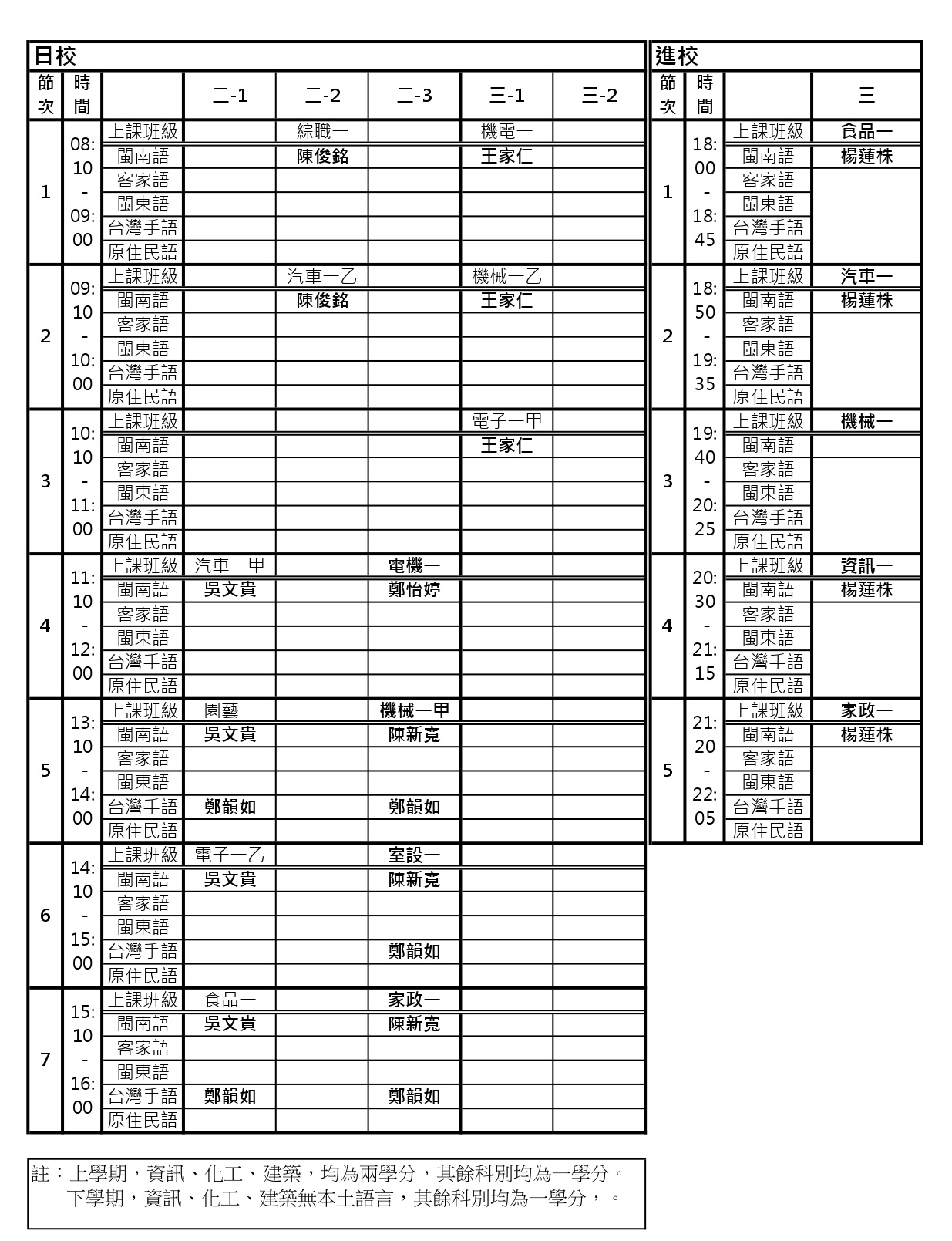 | 教學支援人員 | 閩南語 | 王家仁 |