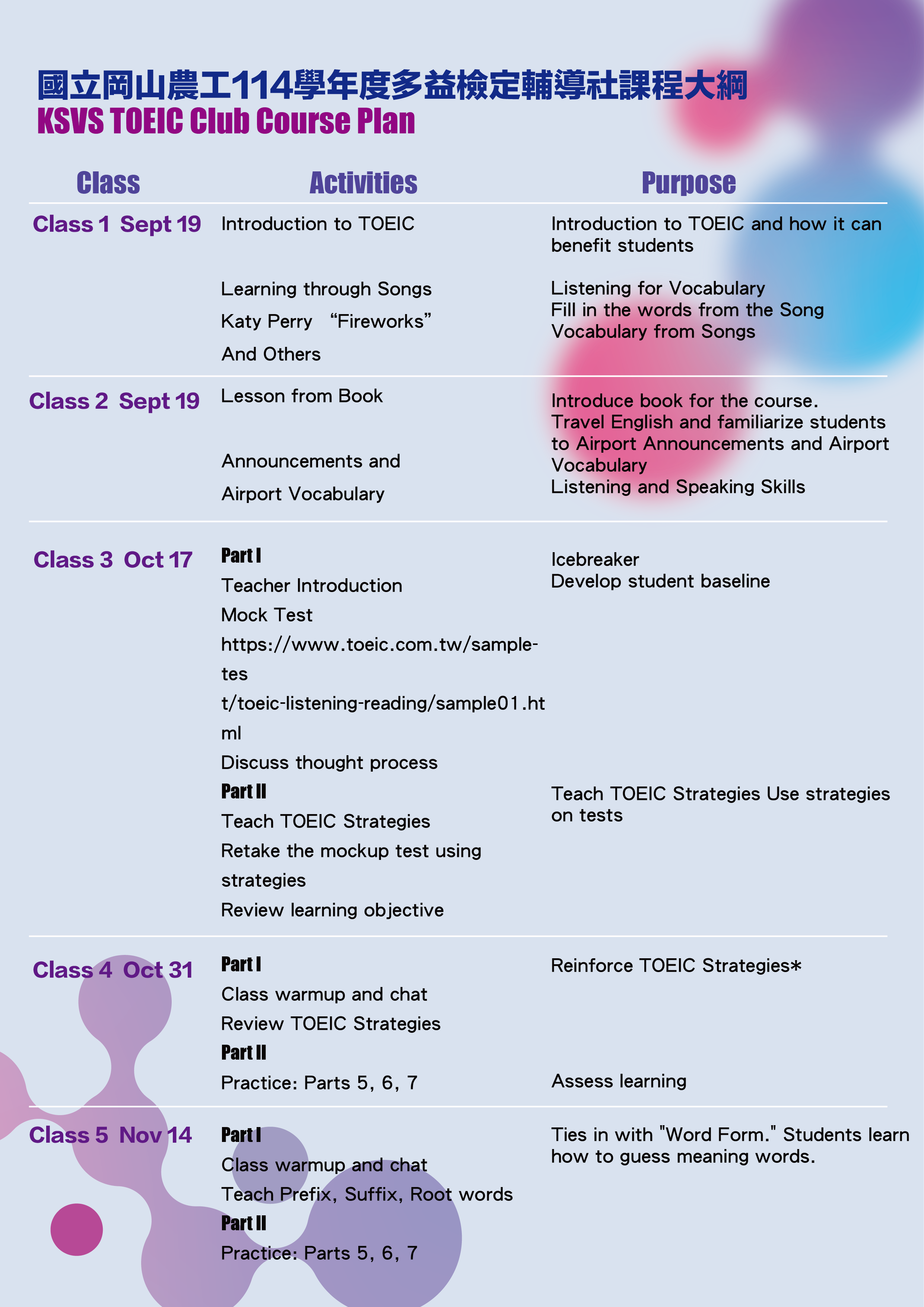 進修部課表