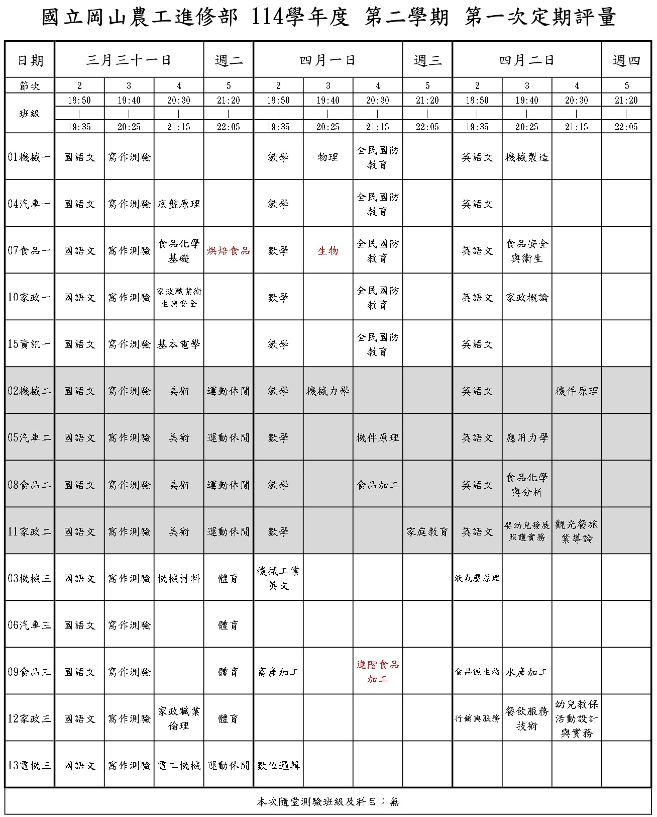 【進修部】114學年度第二學期_第一次定期評量通知