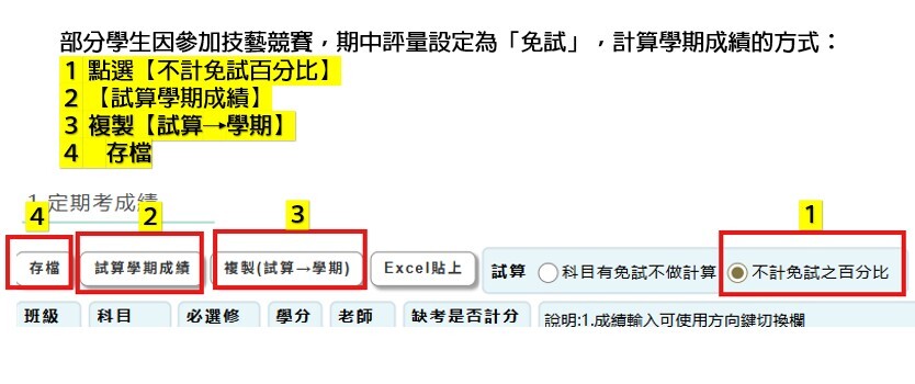 註:跨科、跨群、跨班選修之堂課,任課教師亦應依學生評量補充規定於每次評量成績登錄期間內輸入當次成績。