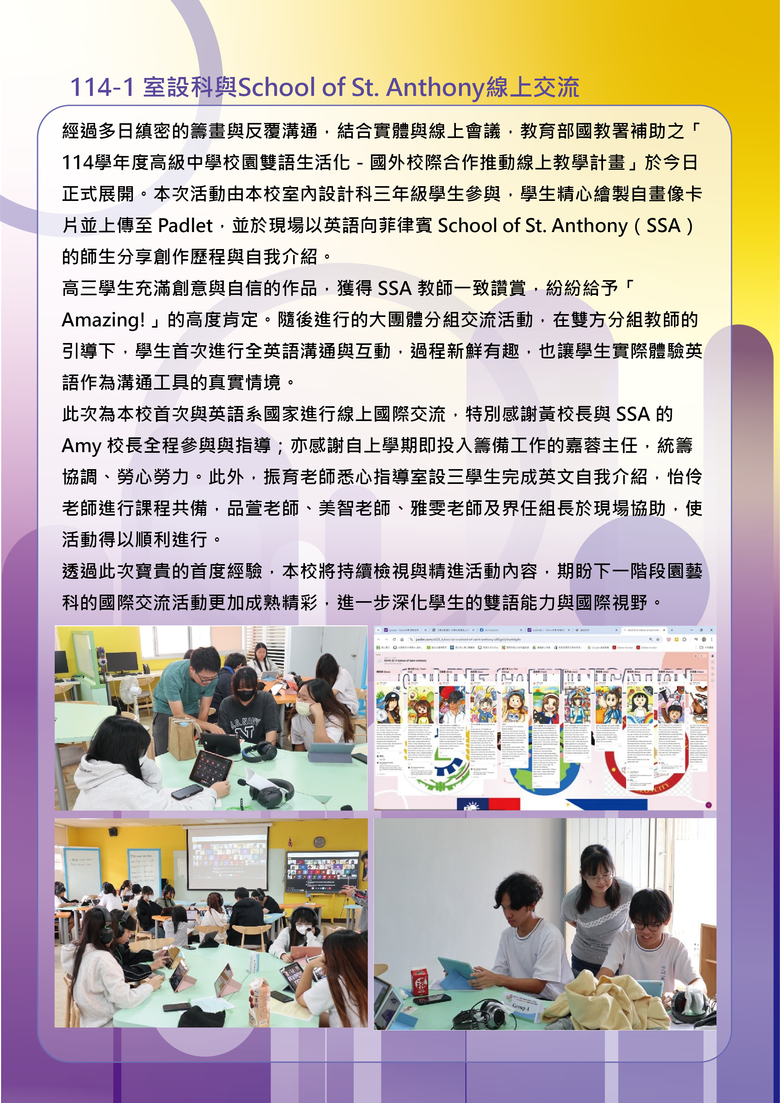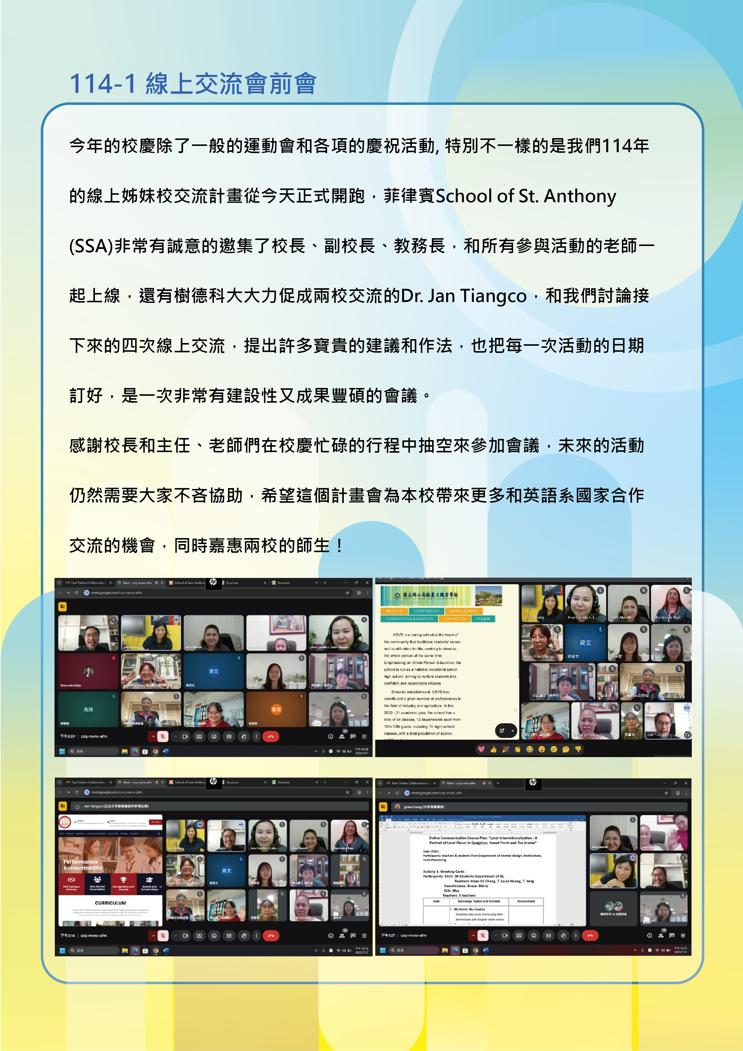 2025/11/23 室設科與School of St. Anthony線上交流
