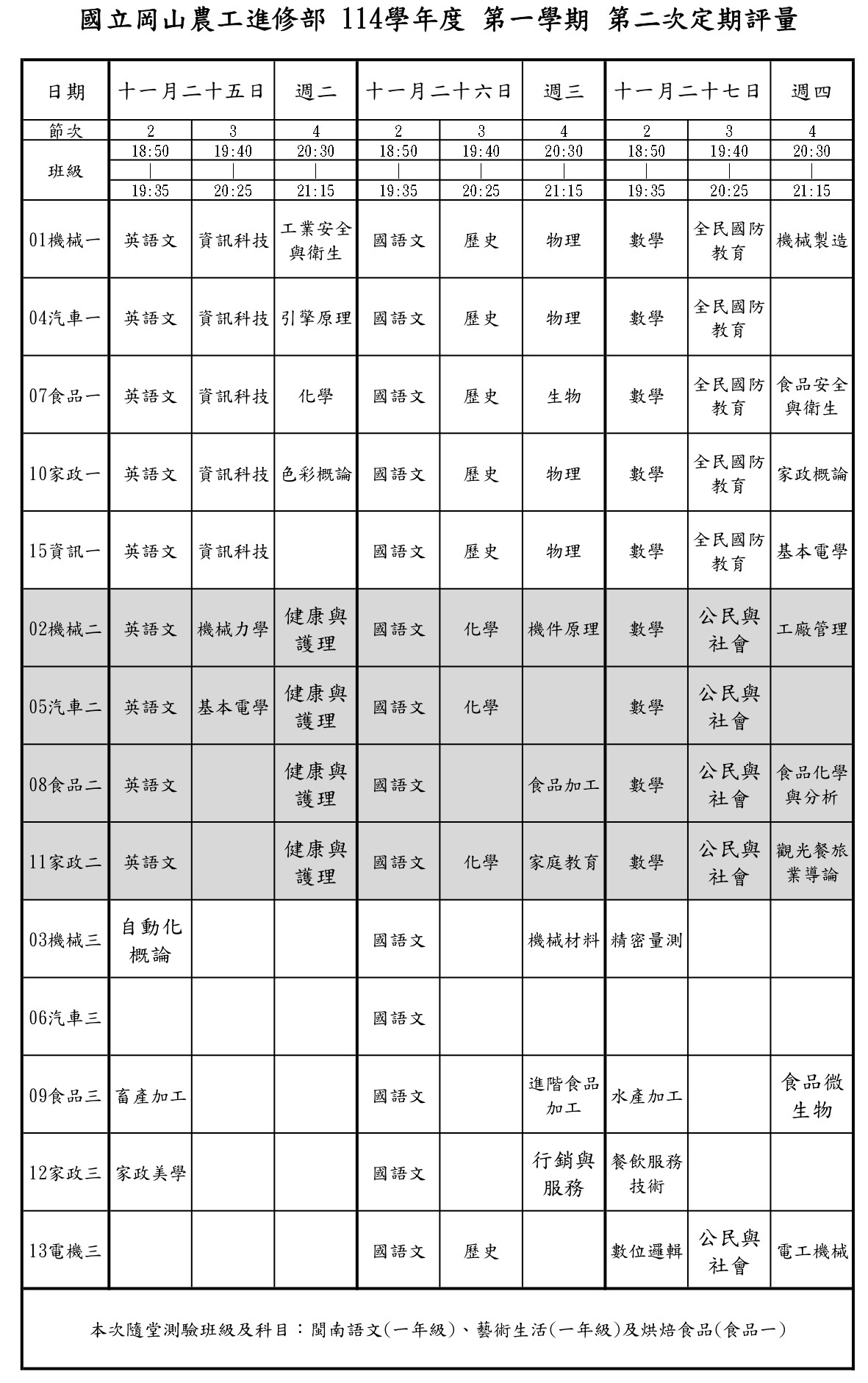 | 114學年度第一學期_定期評量期程 (進修部行事曆) | |||